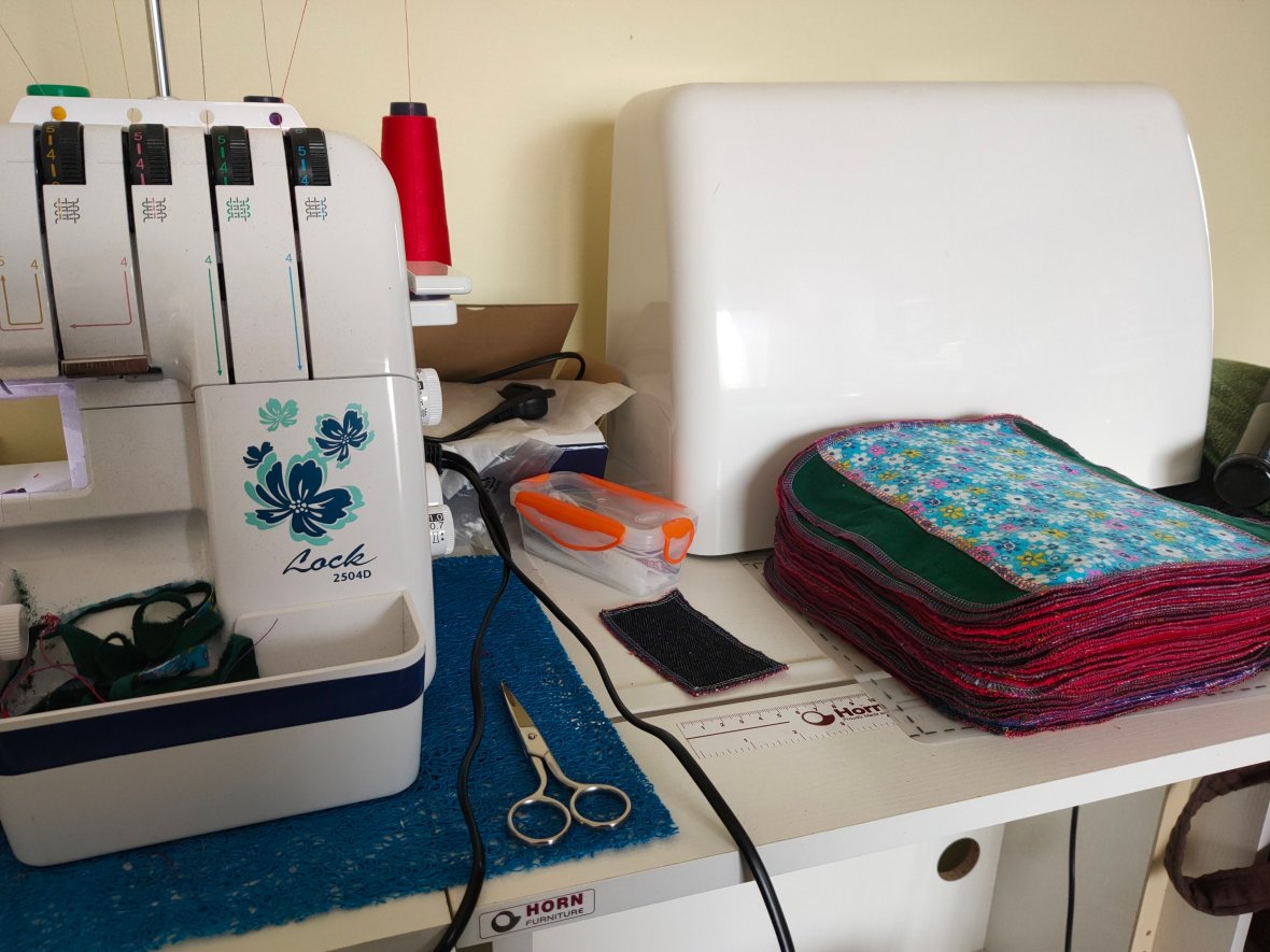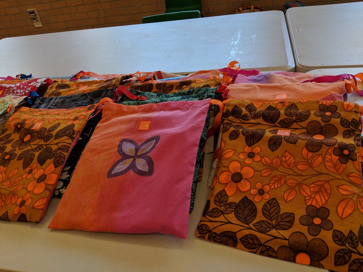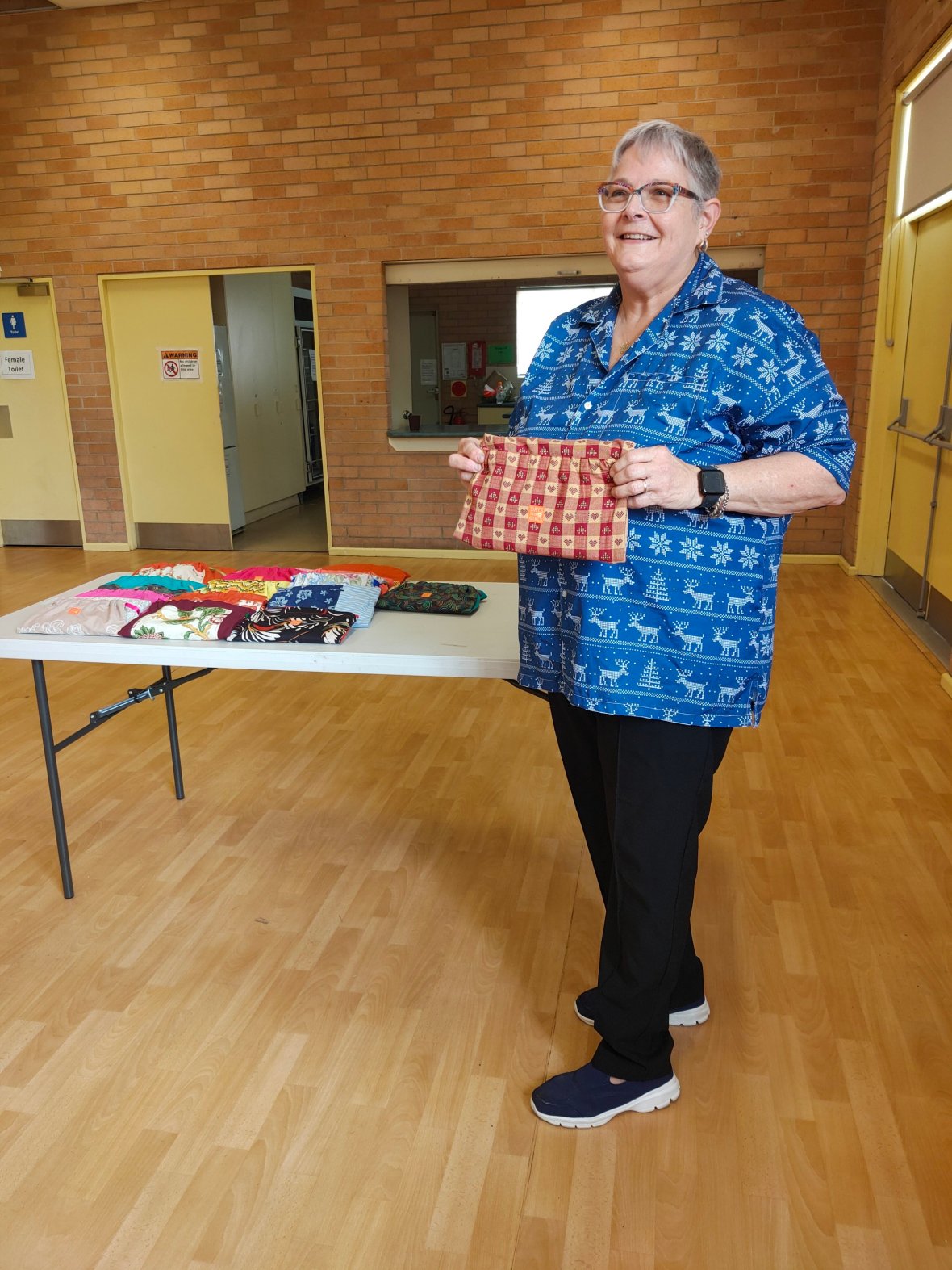 December Sewing day. As well as 45 kits we did a special order of 20 modified kits for women in the bush doing it tough. They will go to the Armidale region and be distributed there.