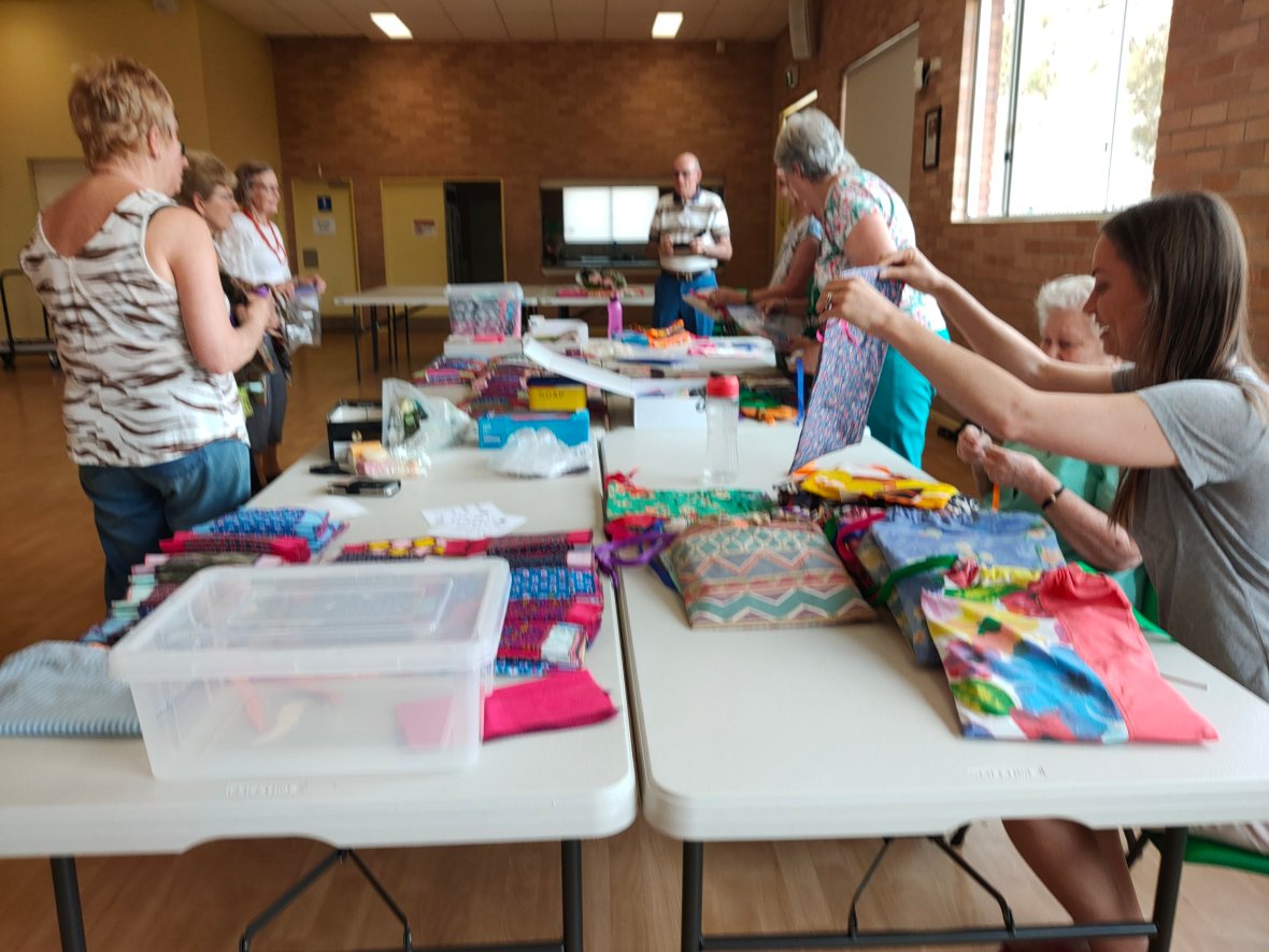 Another successful sewing day. More kits required for PNG and the Philippines. We made 50 kits and on target for the same next time. Sonia provided soup for lunch which at $5 each provided some extra funds for the kitty.