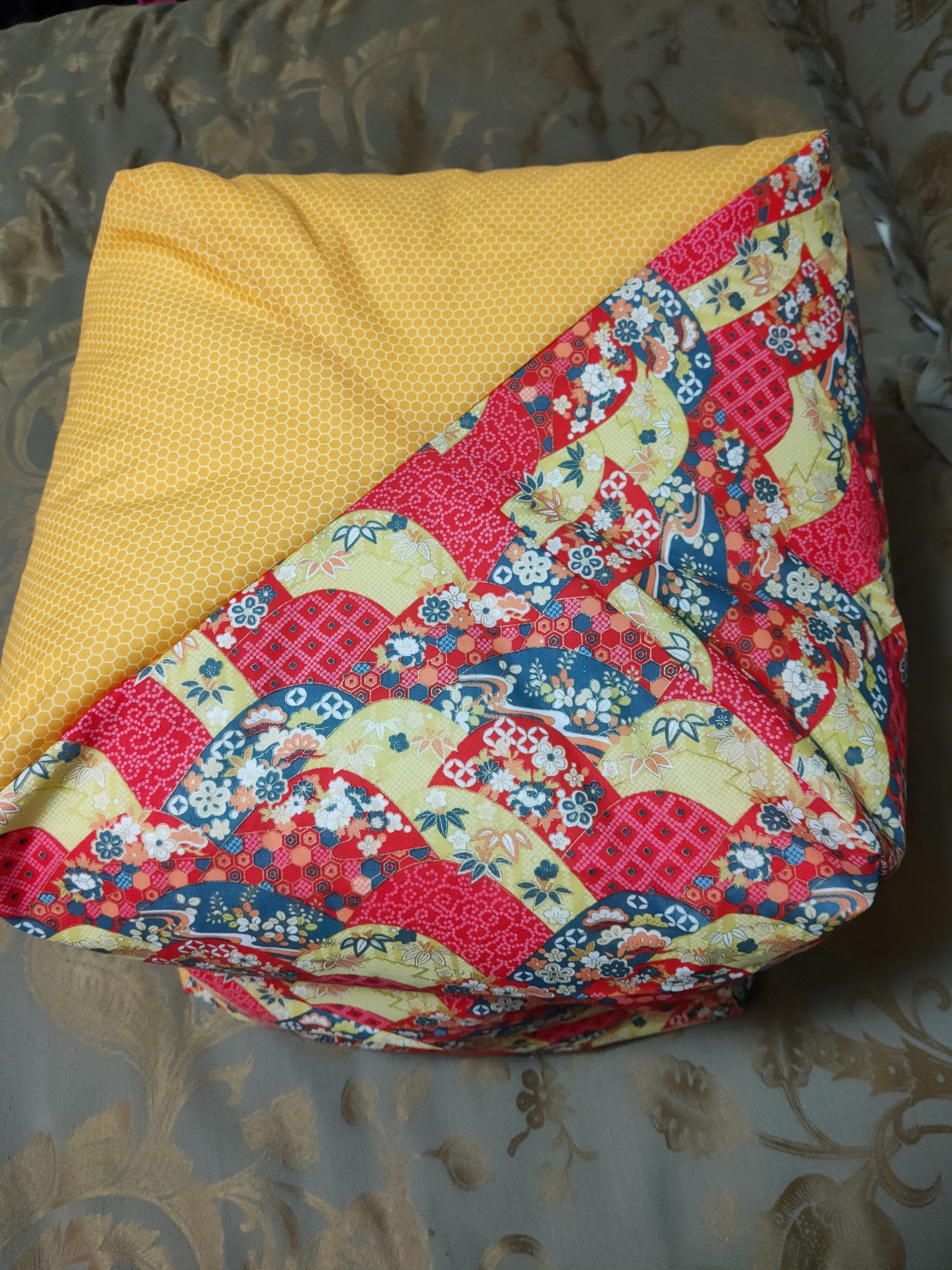 In my searching I came across a variation on the theme, the wonder box. I made up the pattern a constructed the square version. It was ideal for a large stockpot. I preferred a smaller version for my travels so scaled down the pattern and made a smaller version.
