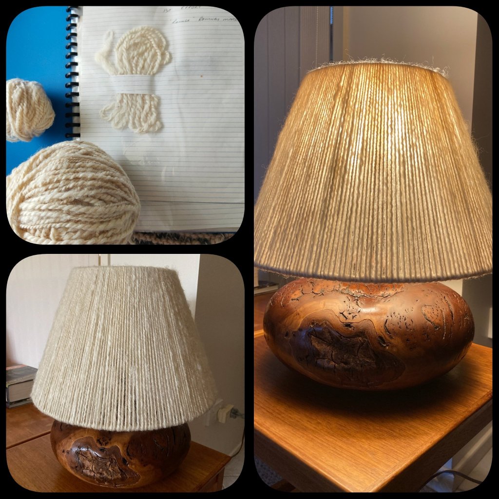 Combined talents 1st Dec 2023 • joansjottingscom I couldn’t find a project to do justice to my first spun wool. Sue needed to replace a much loved lamp shade. Problem solved. Both very happy with the end result. Share this: Share on X (Opens in new window) X Share on Facebook (Opens in new window) Facebook Like Loading... Related
